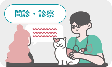 症状やきっかけ、普段の様子を詳しく伺い、視診・触診・においの確認など五感を使って評価します。その状態をもとに必要な検査へ進みます。
